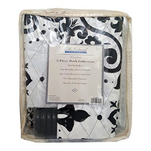 Inquiry: McLeland Design Cordova White Black Damask Flower Floral 5 Piece Shower Curtain Set