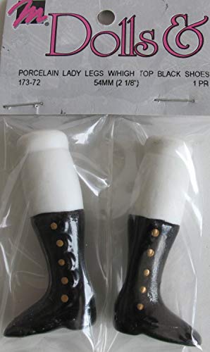 Porcelain Lady Legs High Top Black Shoes 2.5 Inch. Great for replacing old legs or adding new legs to any doll. Includes 1 sets of legs.