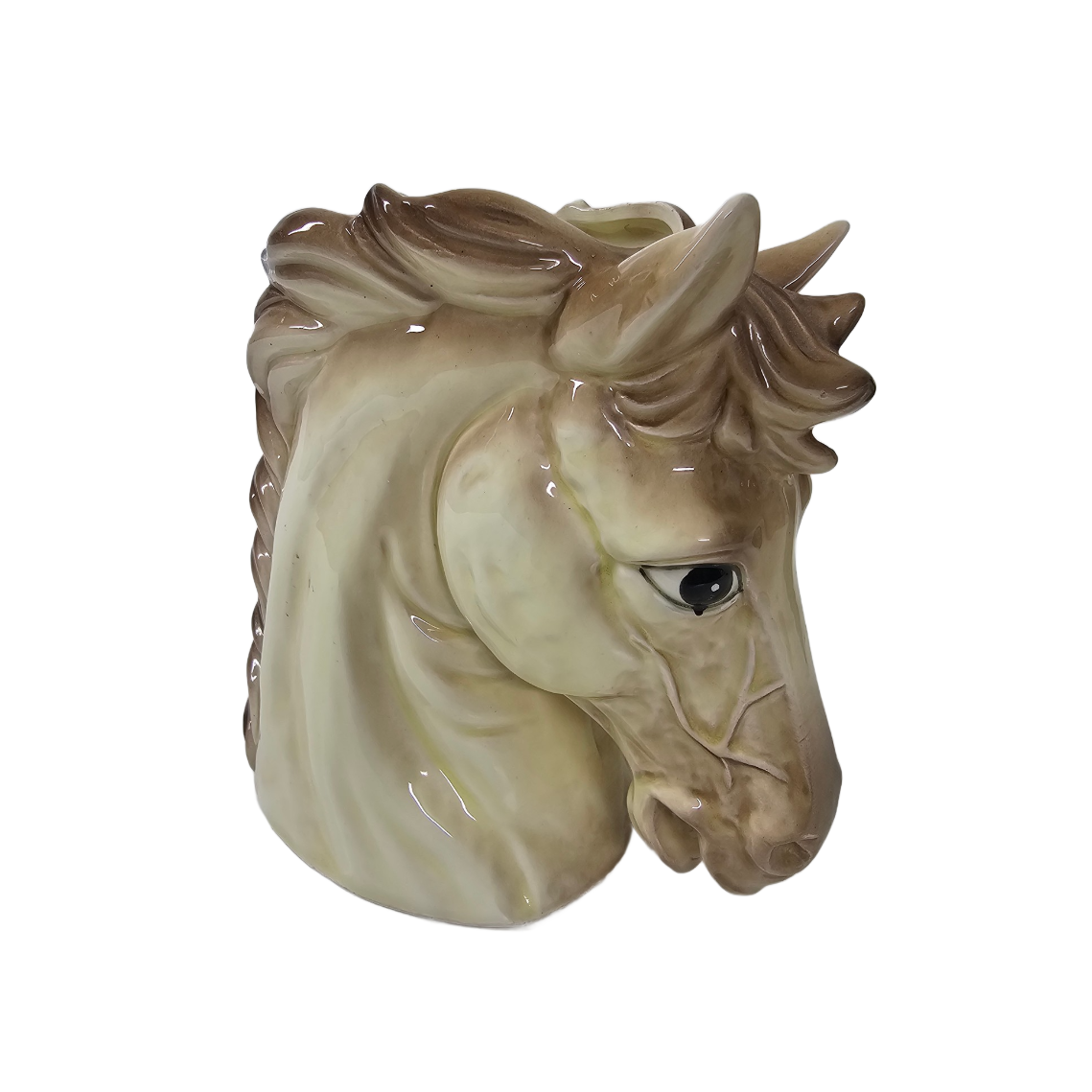 Introducing the Vintage 1950s Japan Relpo Horse Head Vase Planter (Model: 6739) – a stunning collectible that captures the essence of mid-century design and craftsmanship. Featuring an intricate design of a horse head in soft, earthy tones, this exquisite planter is perfect for elevating any home décor. and it stands out for its superb condition, showing no chips or cracks. This unique piece envelopes a nostalgic charm, making it an ideal addition to vintage collections or a fantastic gift for horse lovers. Its versatility extends beyond home use; it can also shine in offices, gardens, or as a distinctive centerpiece at events. It has original foil sticker from Donna’s Flowers in Nokomis, IL.